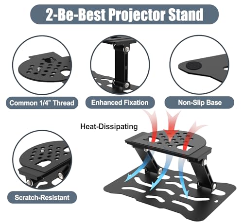 2-Be-Best Adjustable Projector Stand, 3-in-1 Desk / Wall / Ceiling Mount with 180° Dual-Axis Rotation, Carbon Steel Desktop Projector Mount, Universal 1/4″ Screw, Compatible with Most Projectors