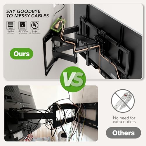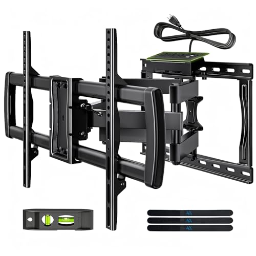 Full Motion TV Wall Mount Bracket with Power Outlet for Most 32-85 inch TV,TV Mount Dual Articulating Arms,Tilt/Swivel/Extension/Leveling,Fits 8” 12” 16″ Studs,Max Vesa 600x400mm, Holds up to 132lbs