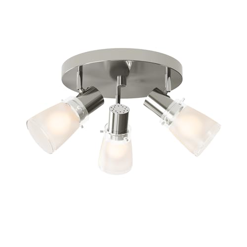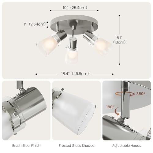 10” Decorative Track Lighting Kit, Brushed Nickel Finish Flush Mount Ceiling Light Fixture with Frosted Glass Shades, E26 Base Adjustable Heads Provide Directional Light (3-Light)
