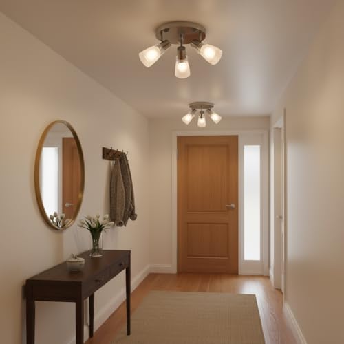 Be the first to review “10” Decorative Track Lighting Kit, Brushed Nickel Finish Flush Mount Ceiling Light Fixture with Frosted Glass Shades, E26 Base Adjustable Heads Provide Directional Light (3-Light)”