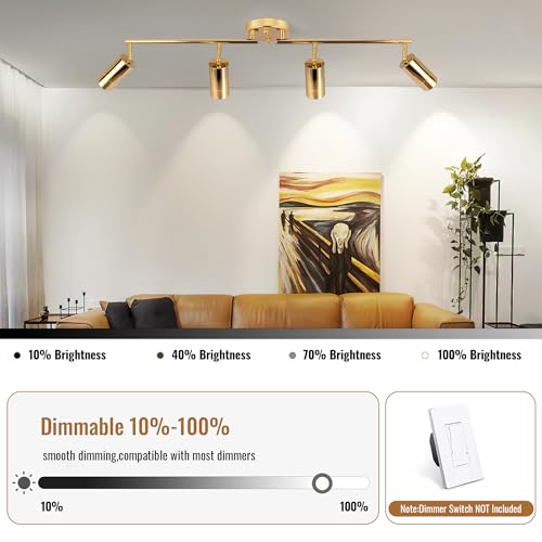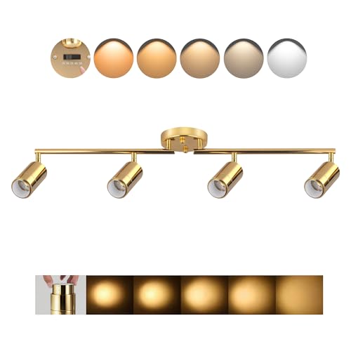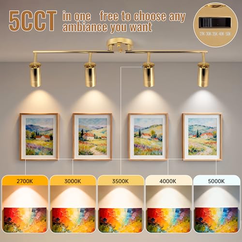 5Color LED Track Lighting Kit 4 Lights Dimmable 48W Track Light,Zoomable15°/24°/36°/45°/60°-2700K/3000K/3500K4000K/5000K,Track Lighting for Accent Task Kitchen,Lumen 4800 (Gold, 48 Watts)
