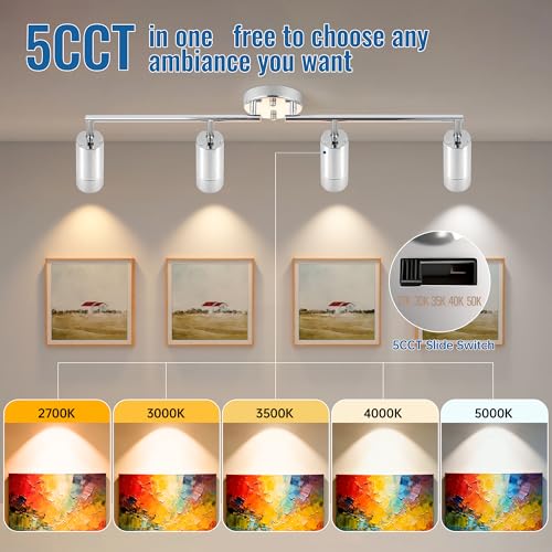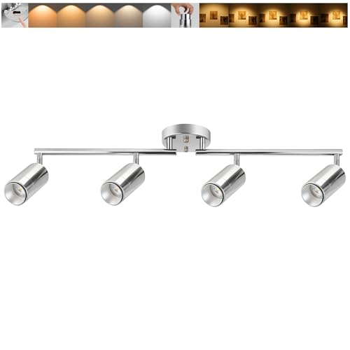 5Color LED Track Lighting Kit 4 Lights Dimmable 48W Track Light,Zoomable15°/24°/36°/45°/60°-2700K/3000K/3500K4000K/5000K,Track Lighting for Accent Task Kitchen,Lumen 4800 (Silver, 48 Watts)