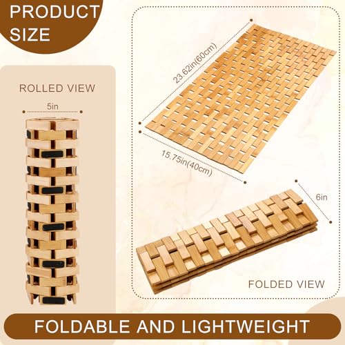 Foldable Design: our bamboo bathtub mat is measured about 24 x 16 inches/ 60 x 40 cm, which is proper in size and light in weight, and can be folded to carry and store, so you can put it in a bag or car, without taking up too much space