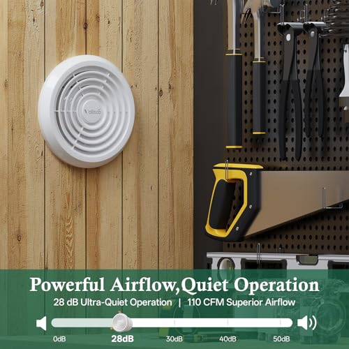 Quiet Yet Powerful Airflow: Delivers strong 110 CFM ventilation while operating at a whisper quiet 28 dB, effectively removing moisture and stale air without disturbing your peace