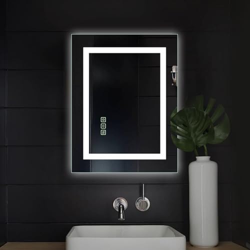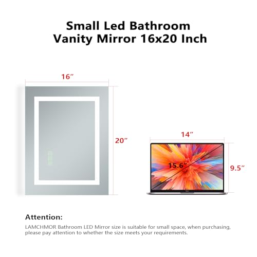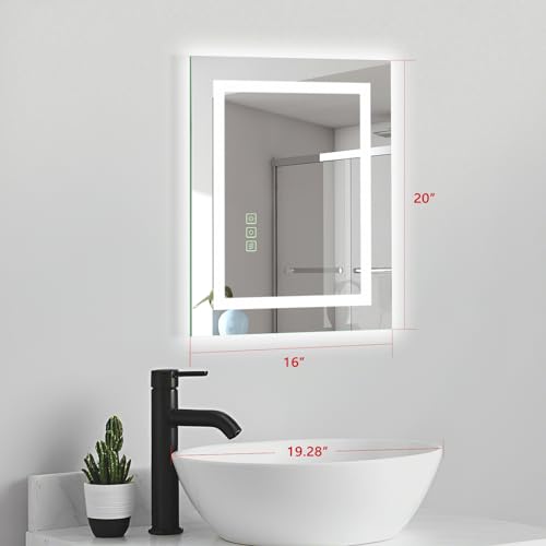 16×20 Inch LED Bathroom Mirror Frameless Vanity Mirror with Lights Backlit and Frontlit Dimmable Anti-Fog (Auto Off) Memory Makeup Wall Mirror for Bedroom Cloakroom Living Room