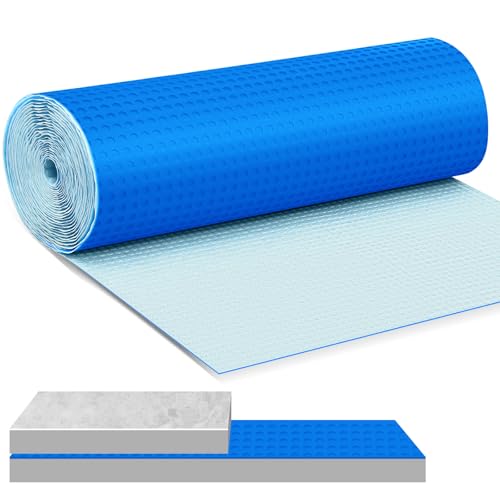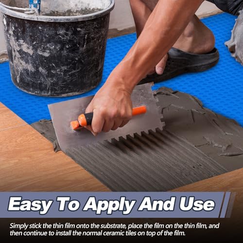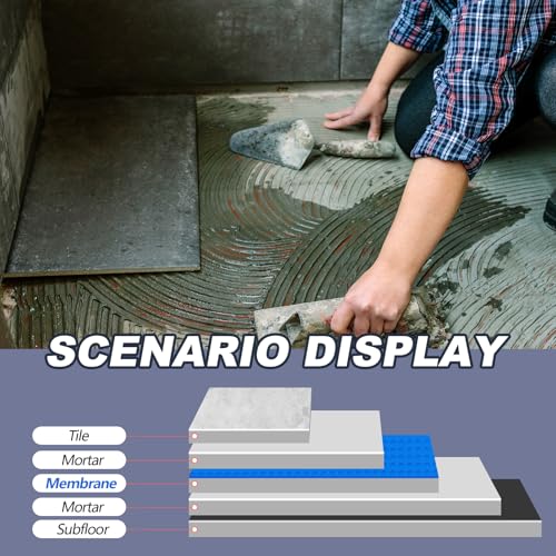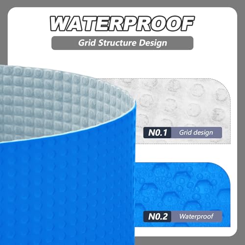 150 sqft Uncoupling Membrane for Tile 1/8”(3mm) Thick Waterproofing Membrane Crack Prevention Anti Fracture Flooring Underlayment for Bathroom Shower Kitchen Basement(Blue)