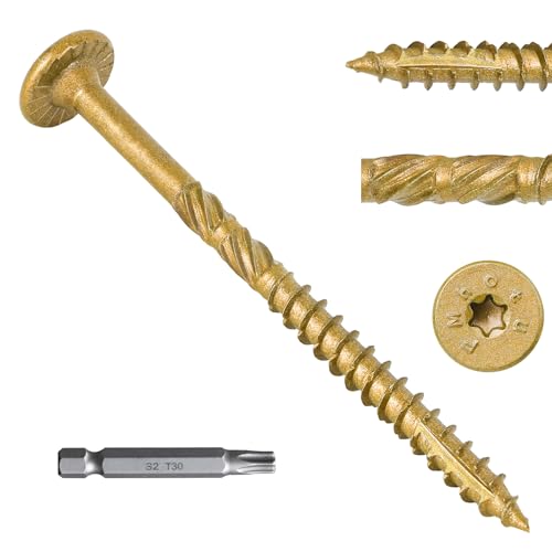 4-1/2 Inch Heavy-Duty Outdoor Deck Screws, 50Pcs Star Drive Decking Wood Screws, Rust Resistant Timber Screws for Timber/Log/Landscaping Wood (#14 x 4-1/2″ Tan)