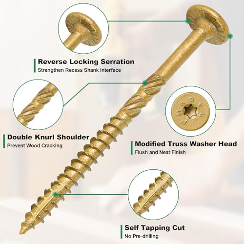 Superior Grip: The serrated thread design of these Heavy-Duty wood screws provides a secure and stable connection, which is essential for decking projects.