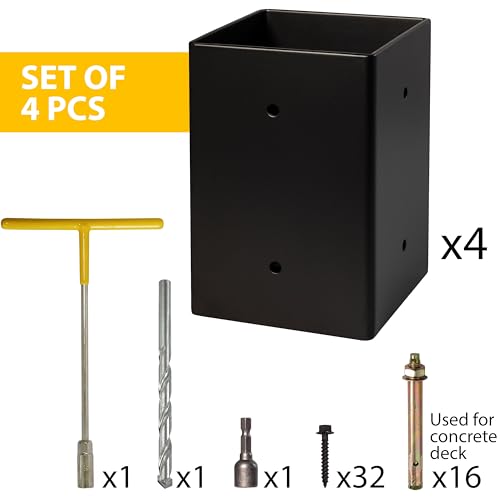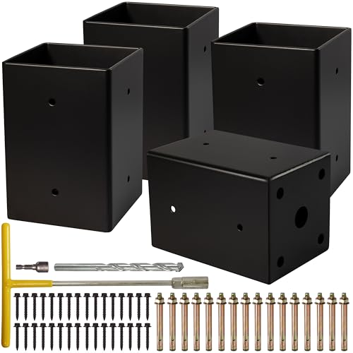 ✅ Includes screws, drill bits and drill conector: Comes with 1 drill bit and 16 extension anchors for concrete floors, 32 screws with drill conector included to fixed 4×4 post, 1 T Handle Hexagon Socket Wrench. Fixed on concrete floor.