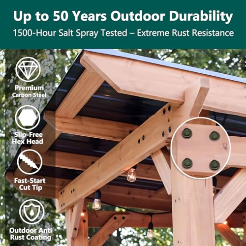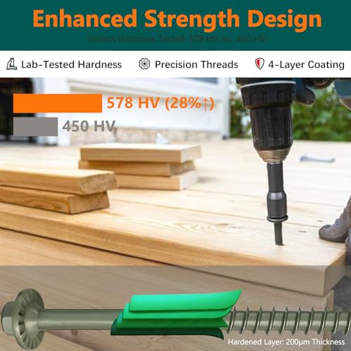 ✅1500H Salt Spray Tested – Outlasts Competitors Forget rust and corrosion! Our screws feature a green epoxy coating that passed a rigorous 1500-hour salt spray test (ASTM B117). Ideal for coastal homes, rainy climates, and harsh outdoor conditions.