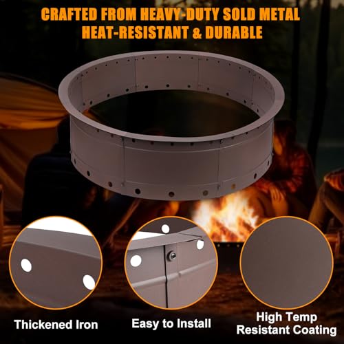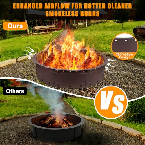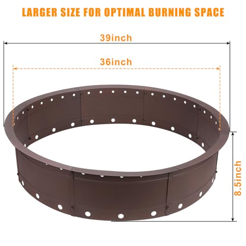 Large 36-Inch Capacity & Versatile Use: With an inner diameter of 36 inches, outer diameter of 39 inches, and height of 8.5 inches, this large fire pit ring holds more wood for longer, concentrated burns. Ideal for backyard gatherings, camping trips, patios, BBQs, resorts, and rustic lodgings—perfect for creating a cozy atmosphere.