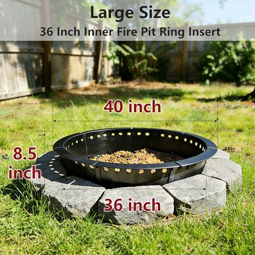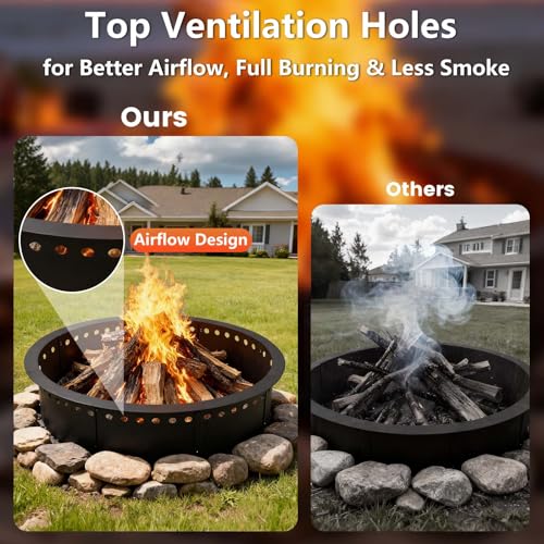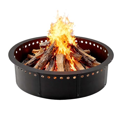 36 Inch Smokeless Fire Pit Ring Insert Outdoor, Heavy Duty Solid Metal Steel Round Firepit Rim Liner for Outside, 40 Inch Outer Diameter DIY Campfire Ring, Above or In-Ground, for Camping Garden Patio
