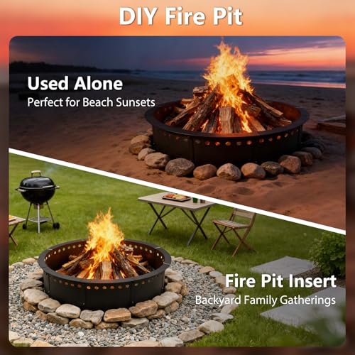 DIY Fire Pit: Our bonfire fire pit ring liner for the courtyard is tailored for both DIY and outdoor enthusiasts. It can be used to upgrade your old fire pit, and also can be used to create a new one. It can meet your diverse needs,such as camping, fishing, bonfire fun, or hosting barbecues in parks, gardens, poolside areas, patios, or backyards.