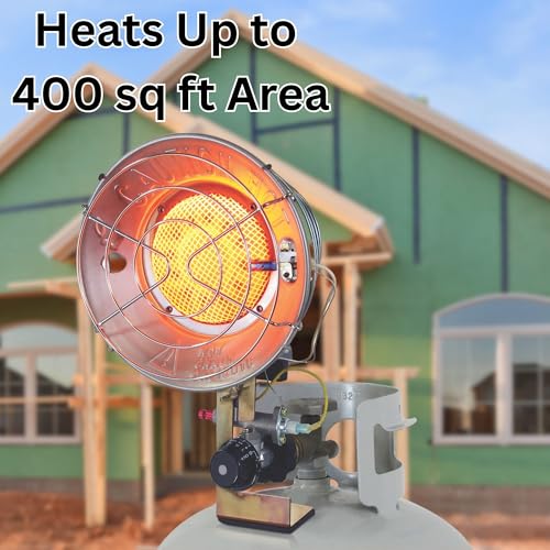 POWERFUL PORTABLE HEATING: This tank top propane heater offers 9,000 / 13,000 / 15,000 BTUs for fast warmth, ideal for job sites and other outdoor heating needs. Heats up to a 300 sq ft area.