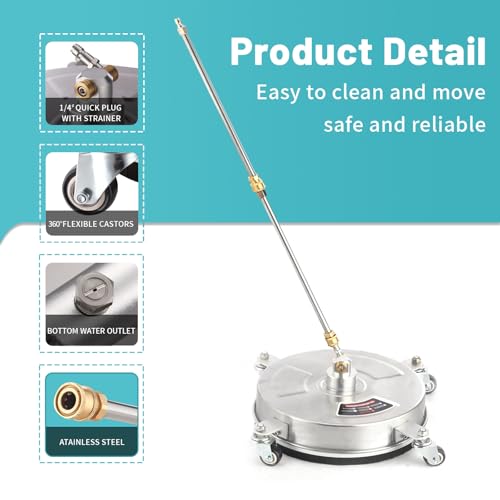 14″ Pressure Washer Surface Cleaner with 4 Wheels – Stainless Steel Surface Cleaner for Pressure Washer Attachment for Concrete, Patio, Sidewalk, Deck and Driveways