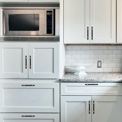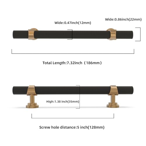 【PACKAGE INCLUDES】10 pacs 5 inches Matte Black and Champagne Bronze cabinet pulls, each individually wrapped to prevent scratches, also comes with two lengths (1 inch and 1.73 inch) screws removable