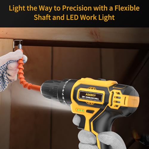 【DIY-READY POWER】This Aseboy cordless drill’s 20V motor and 28Nm max torque provide ample power for a wide range of home improvement and DIY projects, from assembling furniture to hanging shelves. Note: Not for drilling reinforced concrete.