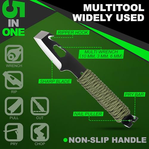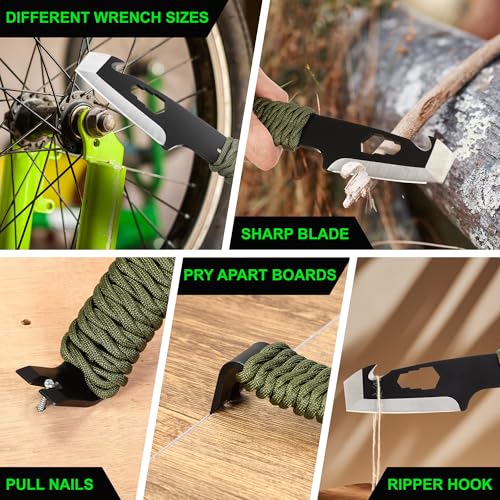 Versatile Features: This Wrecking Bar Multitool comes packed with essential features including a chisel blade, multi wrench (10 mm, 13 mm, 16 mm), pry bar, and nail puller. Crafted with a paracord non slip handle it provides a secure grip for diverse tasks, making it a perfect addition to your survival gear collection