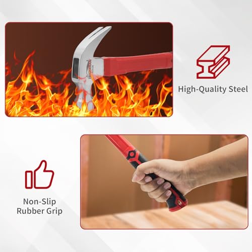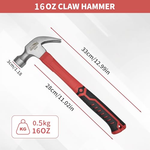 Durable Construction:Made of 45# carbon steel, this 16oz heavy-duty hammer offers excellent hardness and wear resistance.
