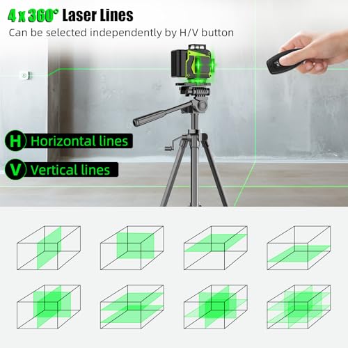 16 Line Laser Level 360 Self Leveling,Professional 4×360°Green Cross Line laser Level Tool for Construction and Picture Hanging,lazer leveler tool with 2 Batteries,Magnetic Bracket & Remote Control