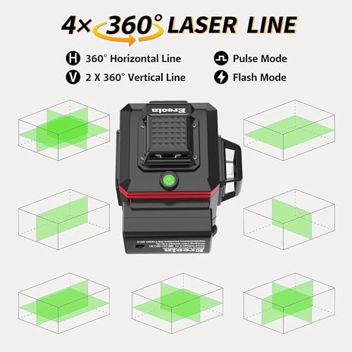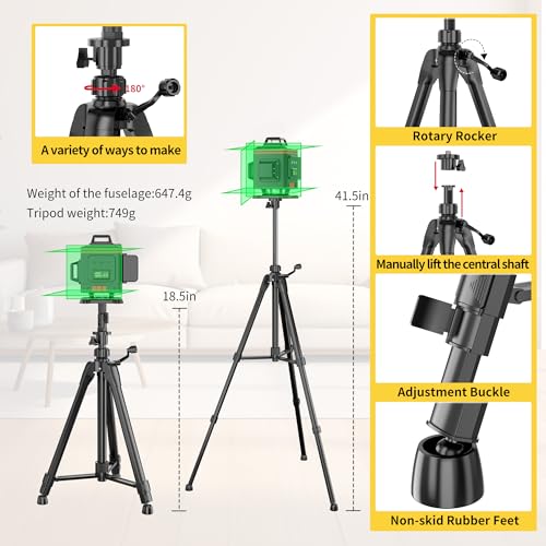 16 Lines Laser Level 4×360° Self Leveling Green Laser Level,4D Green Cross Line for Construction and Picture Hanging,Laser measurement calibration tool,with 2 Rechargeable Battery and tripod