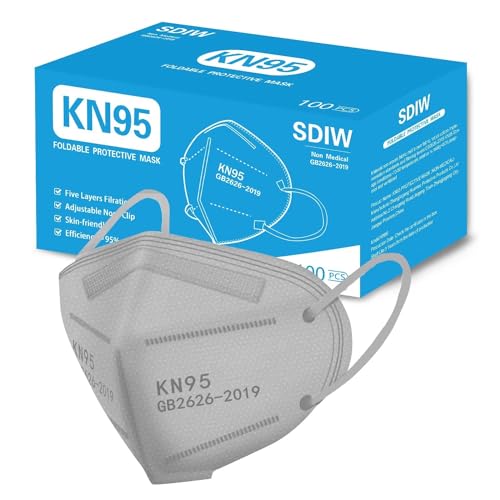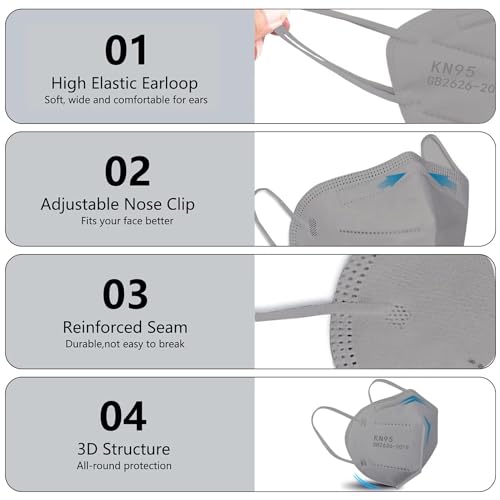100PCS KN95 Face Masks 5 Layer Filter Efficiency≥95% with Elastic Ear Loop and Nose Bridge Clip Breathable Mask Grey