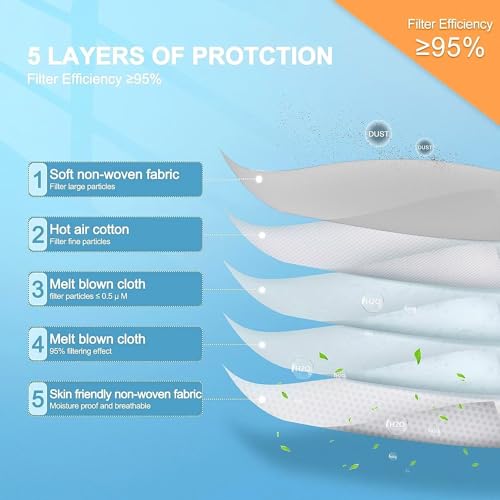 This KN95 face masks are made of two layers of non-woven fabric, two layers of melt-blown fabric, one layer of hot air cotton.5 Layers of Protection, , stronger filtering effect greater than 95%.